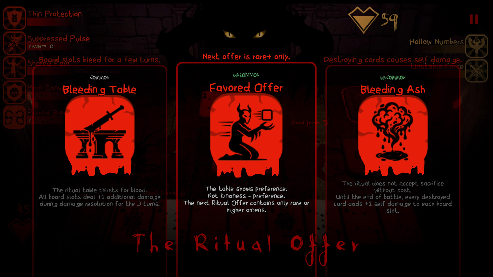 A minimalist, atmospheric roguelike where every decision is a trade-off between power and pain.